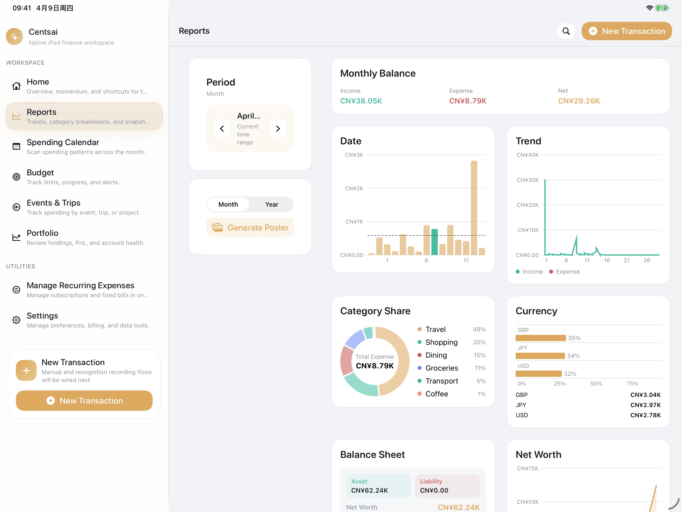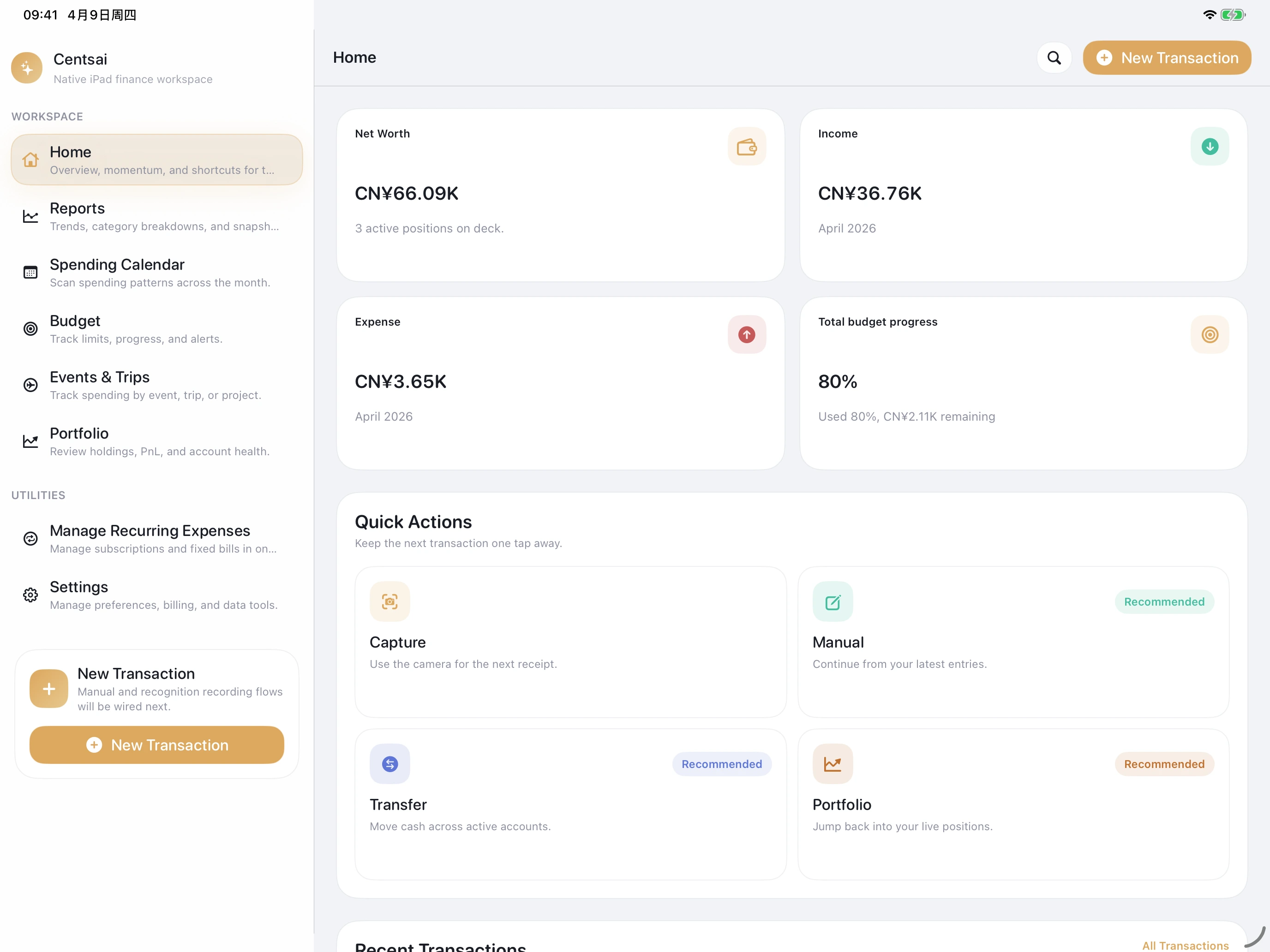 Your personal finance home across Apple devices.