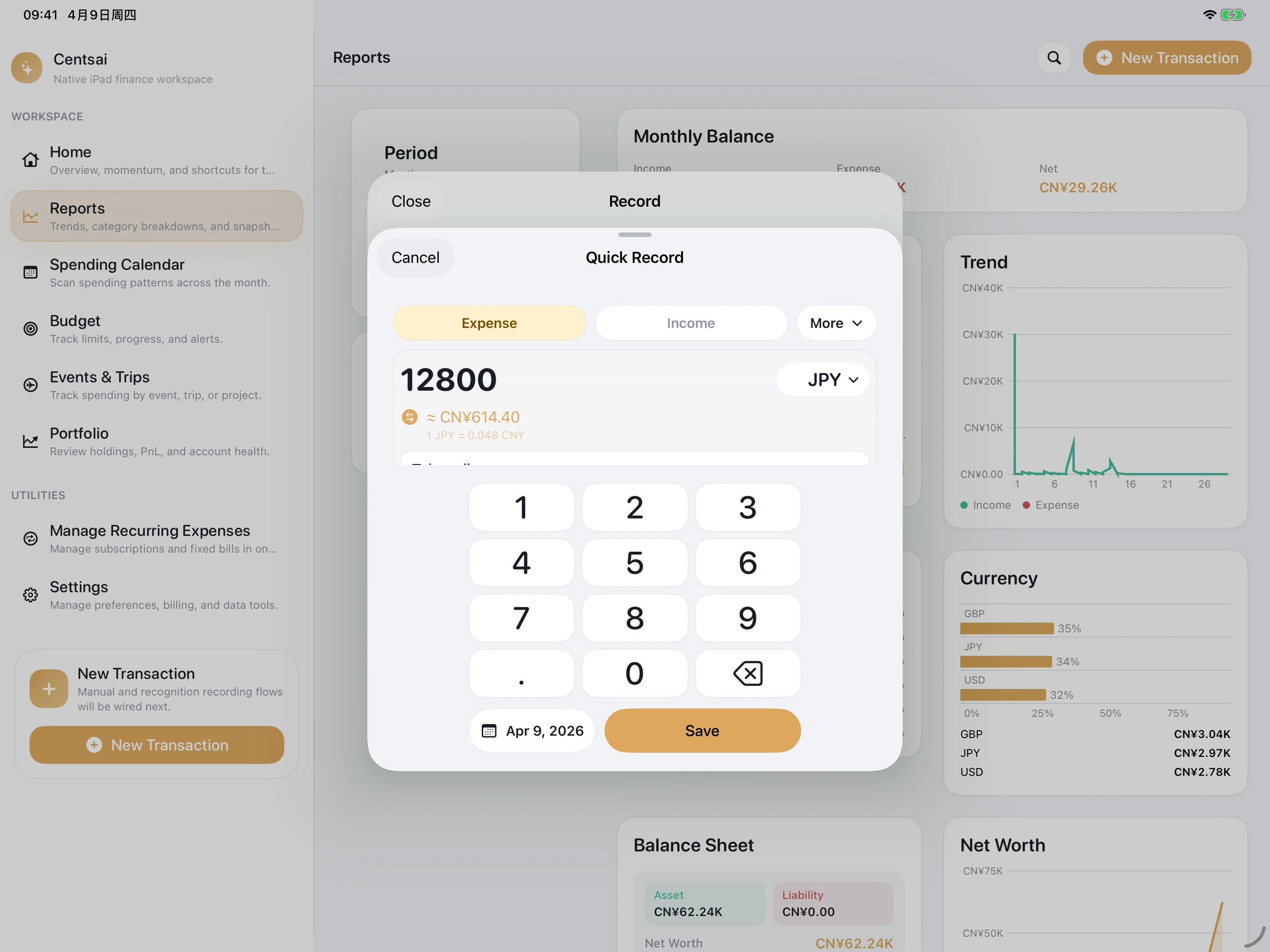 Capture spending in seconds, keep accounts and budgets in order, and review the full picture on iPhone, iPad, Mac, Apple Watch, widgets, and private iCloud sync.